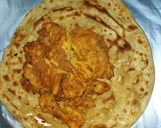 A: Yes, a Chicken Kebab Roll wrapped in naan with salad and chutney is offered.