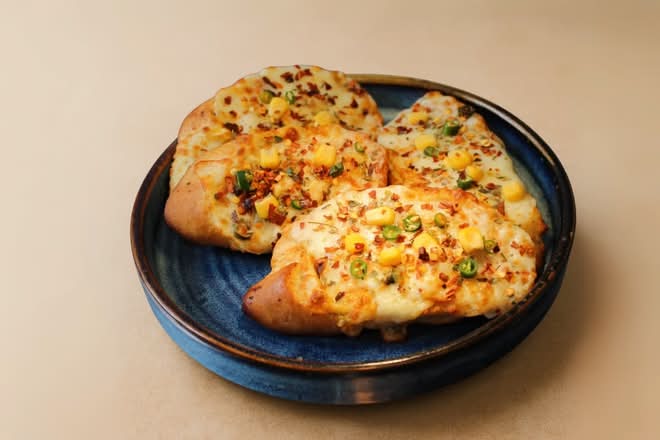 A: Starters include Chicken Wings, Garlic Bread options, Cheesy Wedges, Onion Rings, and Chicken Tikka Wraps.