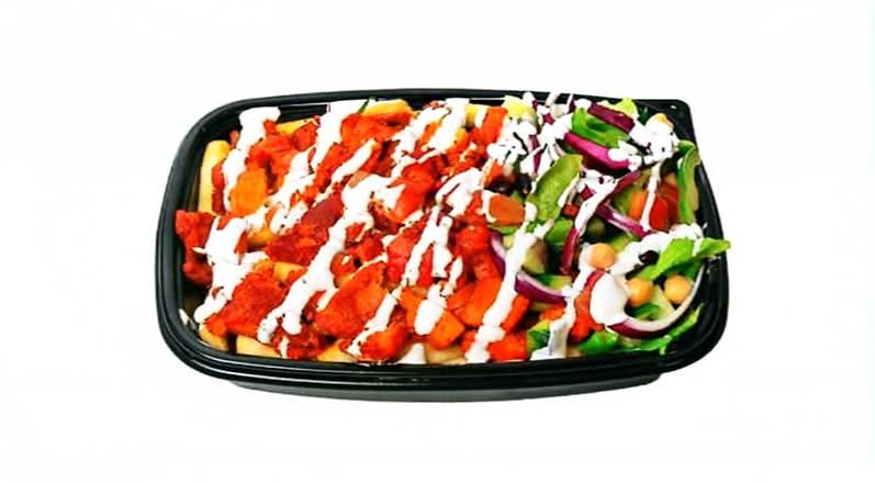 | Combo Over Chips Delicious meal of juicy chicken marinated, and ground lamb mixed with finest herbs and spices, grilled to perfection and served over our chips and salad of your choice. M ay contains peanuts, may contains tree nuts, may contains sesame seeds and may contains sulphur dioxide. | £7.99 | ![]() |