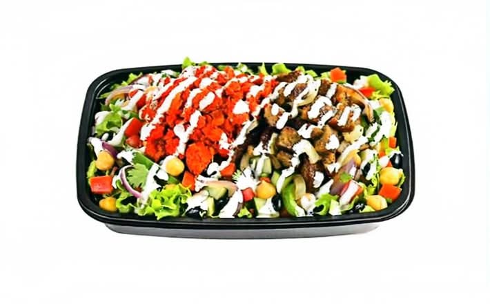 | Combo Over Salad Delicious meal of juicy chicken marinated, and ground lamb mixed with finest herbs and spices, grilled to perfection and served over our salad of your choice. May contains peanuts, may contains tree nuts and may contains sesame seeds. | £7.99 | ![]() |
