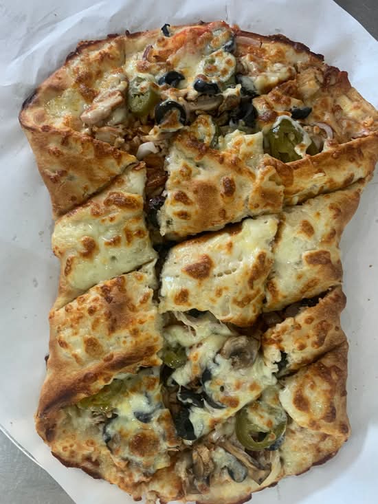 A: The pizza selection includes 10-inch and 12-inch sizes.