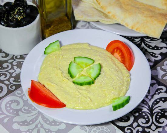 A: Yes, the menu includes starters such as Houmous and Chicken Wings, as well as side orders.