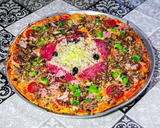 A: The special includes Italian Sausage, Salami, Pepperoni, Ham, Mince Beef, Green Peppers, Mushroom, and Black Olives.