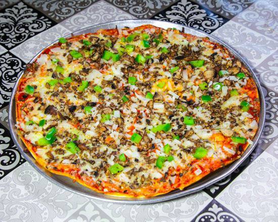 A: Vegetable pizzas are available in 13″ Small and 15″ Large sizes.