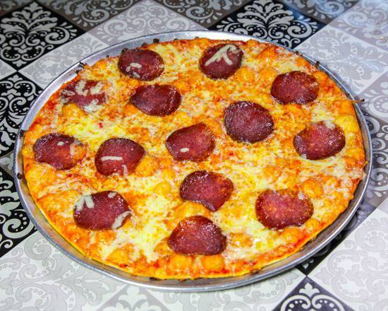 A: Meat options include Pepperoni, Salami, Ham, Bacon, Italian Sausage, Hamburger, and Chicken.