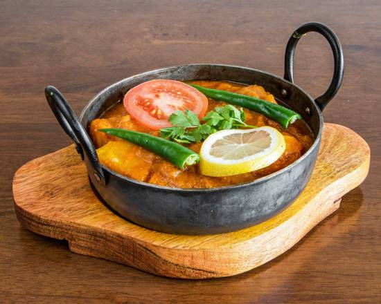 A: The Passanda is prepared in a slightly hot blend of curry sauce with lentils, fresh lemon juice, and pineapple.