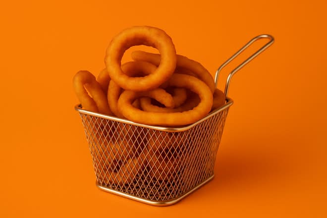 A: Available sides include Skin On Fries, Curley Chips, Flamen Chicken Bites, and Onion Rings.