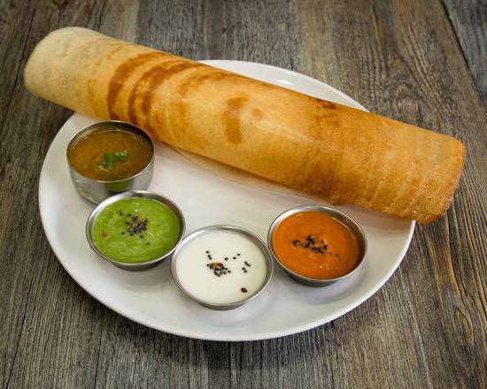 A: The Dosa selection includes Plain Dosa, Masala Dosa, Ghee Roast, and specialized options like Paneer Masala Dosa.
