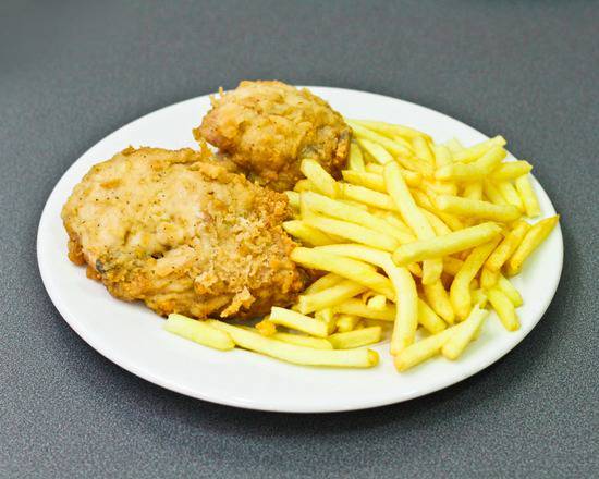 A: A single piece of chicken is listed on the menu at a price of £2.49.
