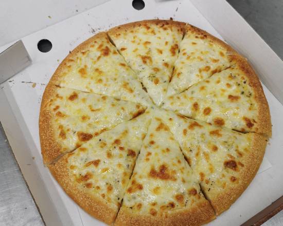 A: The pizzas are available in 10-inch and 12-inch sizes, with various topping combinations.